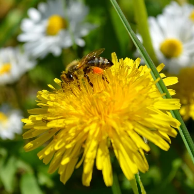 Wir Bienen sammeln fleißig Pollen und bringen sie nach Hause.